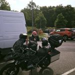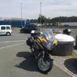 Auf der A3 behinderten uns einige Baustellen, dazu noch der Pfingstferien Reiseverkehr welcher immer wieder Staus verursachte. Erst als wir hinter Nürnberg die A9 befuhren wurde der Verkehr wieder erträglicher. Bei einer kurzen Pause auf einem Rasthof trafen wir auf 3 ADAC Stauberater mit ihren Motorrädern. Auf unsere Nachfrage, wie es mit dem Verkehr auf der A9 aussieht, telefonierte einer umgehend mit seiner Dienststelle und erfragte für uns die aktuelle Verkehrssituation.